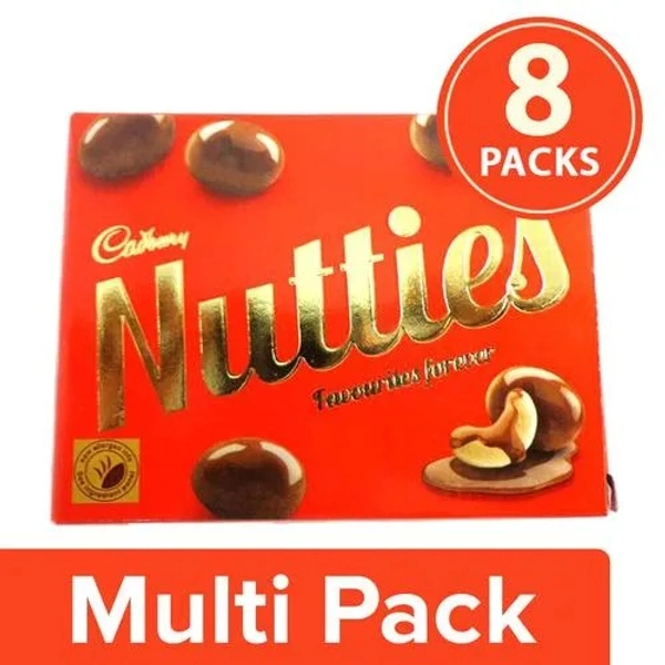 Enjoy a blend of exotic cashew nuts and Cadbury milk chocolate in every bite. With the yummy flavour of cashew nut with a smooth chocolate coating, Cadbury Nutties are the perfect munching partner.