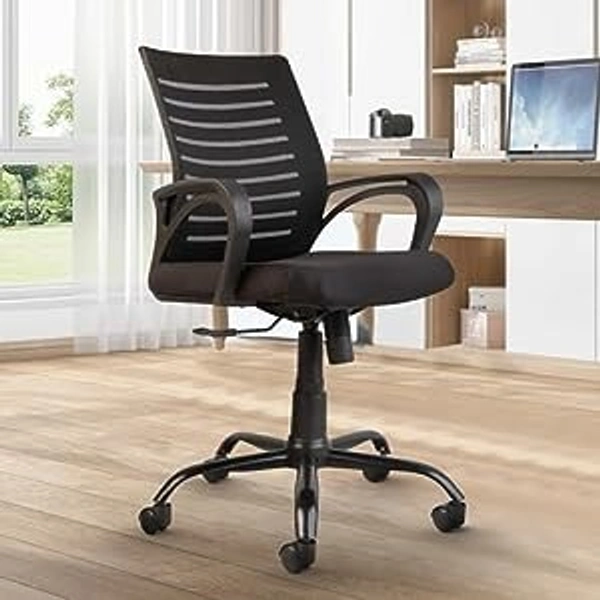 Desire C104 Mesh Mid-Back Ergonomic Office Chair/Study Chair/Revolving Chair/Computer Chair for Work from Home Metal Base Height Adjustable Chair [Black]