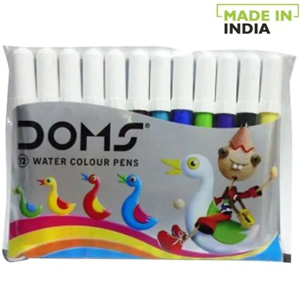 Doms 12 Water Colour Pens mini are water-soluble coloured pens. It has a unique push resistant tip and ventilated caps. It has rich and vibrant colours with super quality pigment strength. It has a 2.5 mm durable fiber tip.