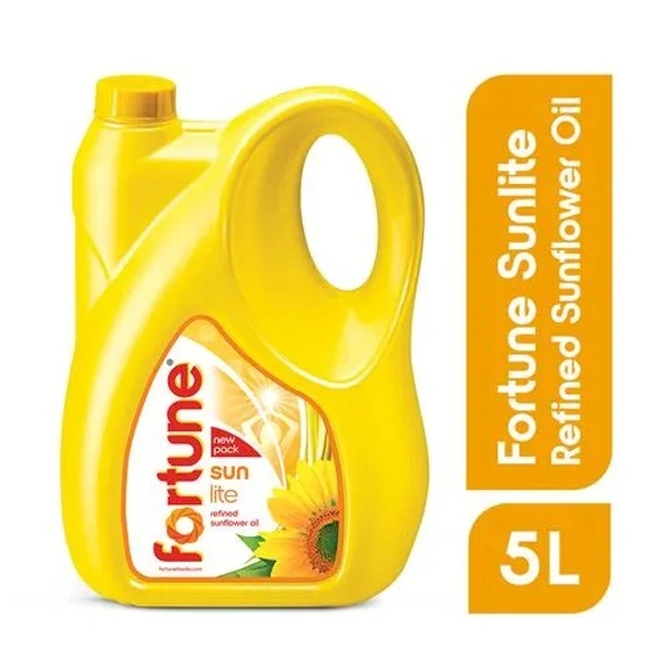 Fortune Sun lite Refined Sunflower Oil - Fortified with Vitamin A & Vitamin D, 5 L Can